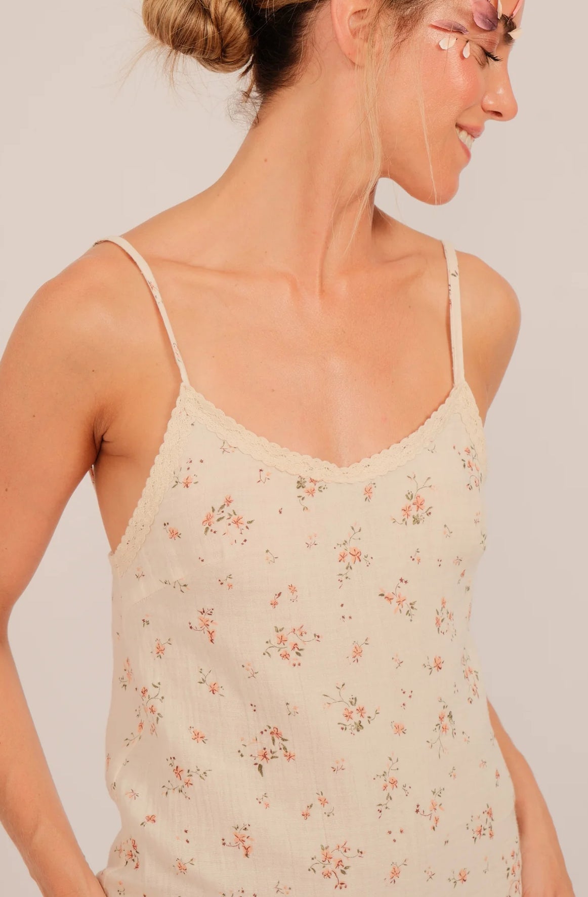 Sus detalles en puntillas de algodón que le dan ese toque romántico y especial y su abertura lateral para que puedas moverte libre, como nos gusta!
