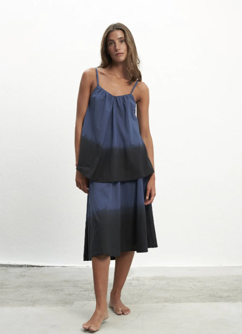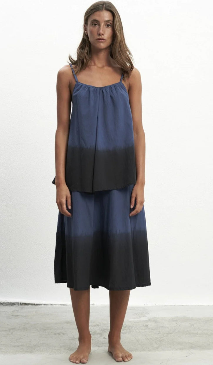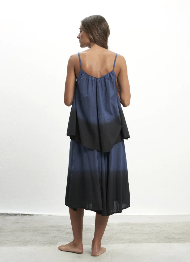 hecho con la técnica tie dye en tonos azules con tintes naturales.