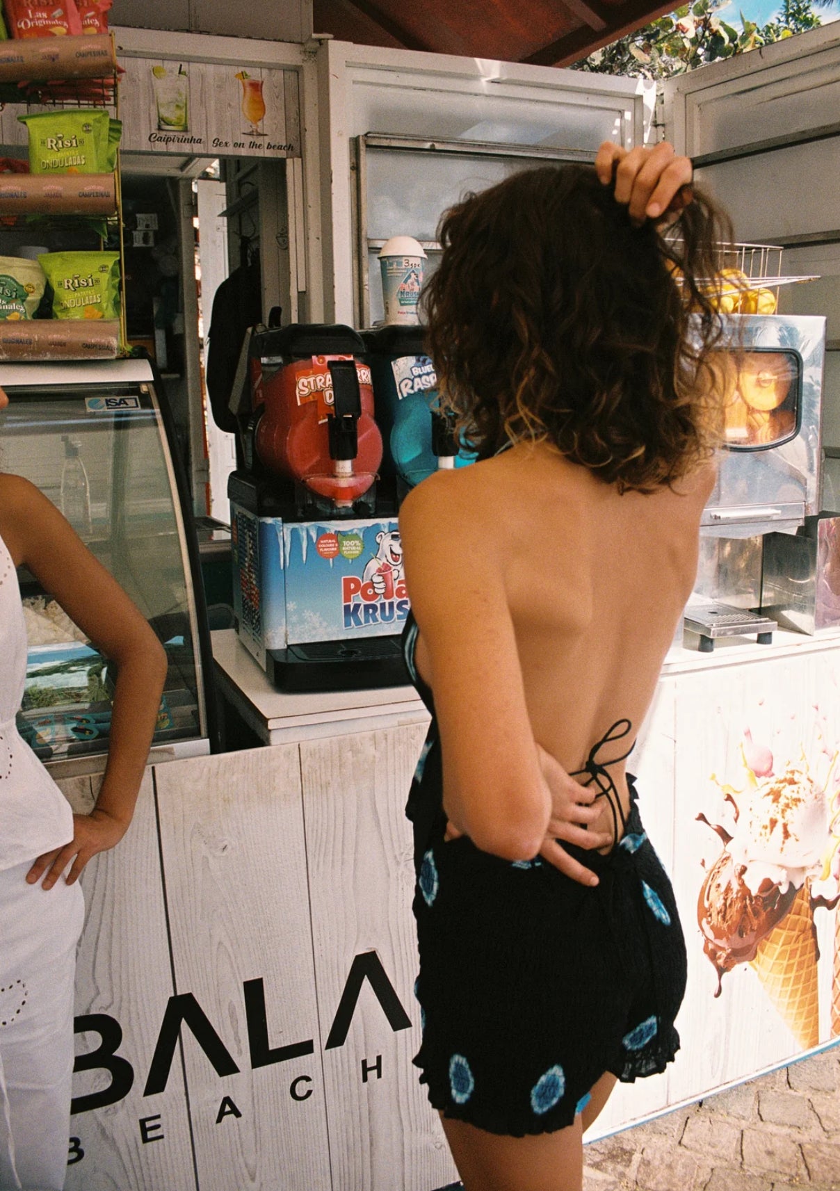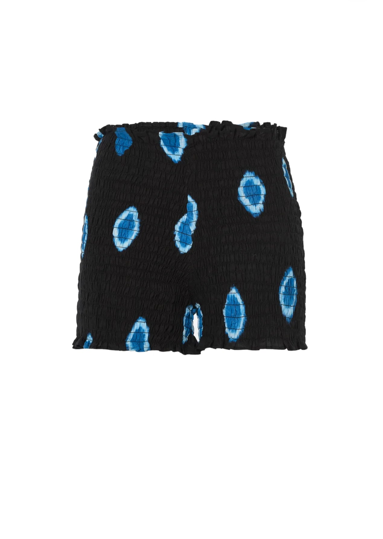 Pantalón corto con nido de abeja realizado con la técnica manual de shivory con tintes naturales en color negro con detalles azules🌊