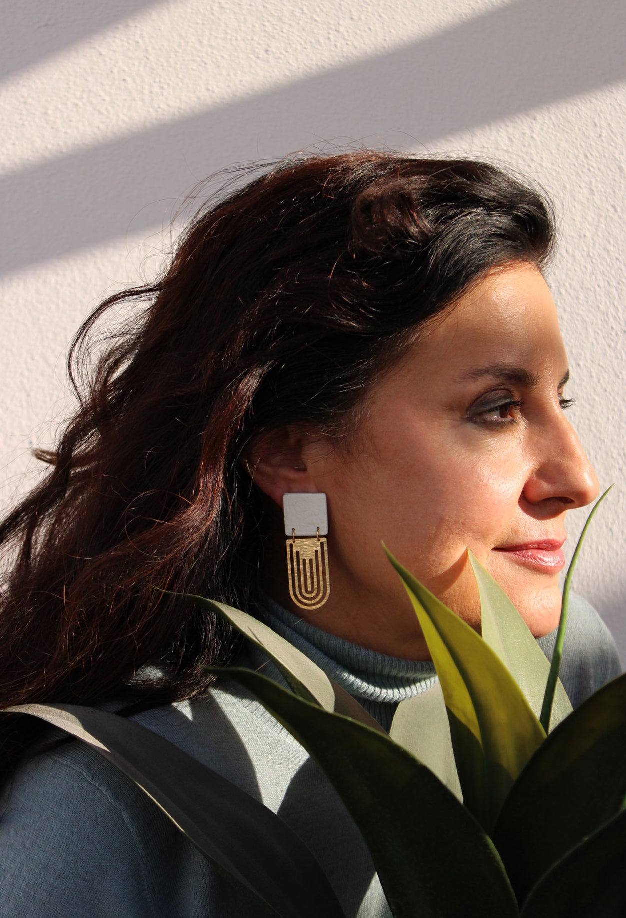 El modelo Maze combina una pieza de arcilla texturizada con este precioso aplique de latón. Un pendiente increíblemente ligero.