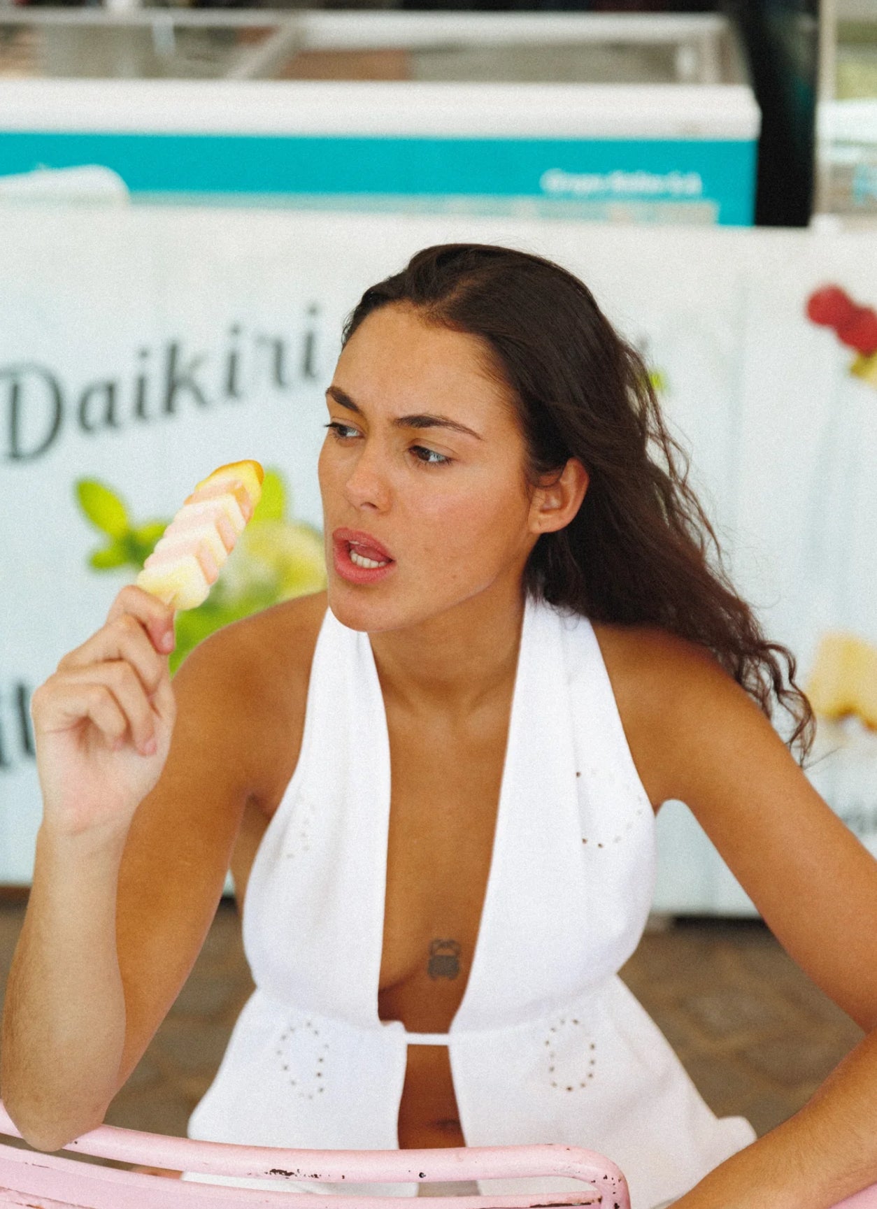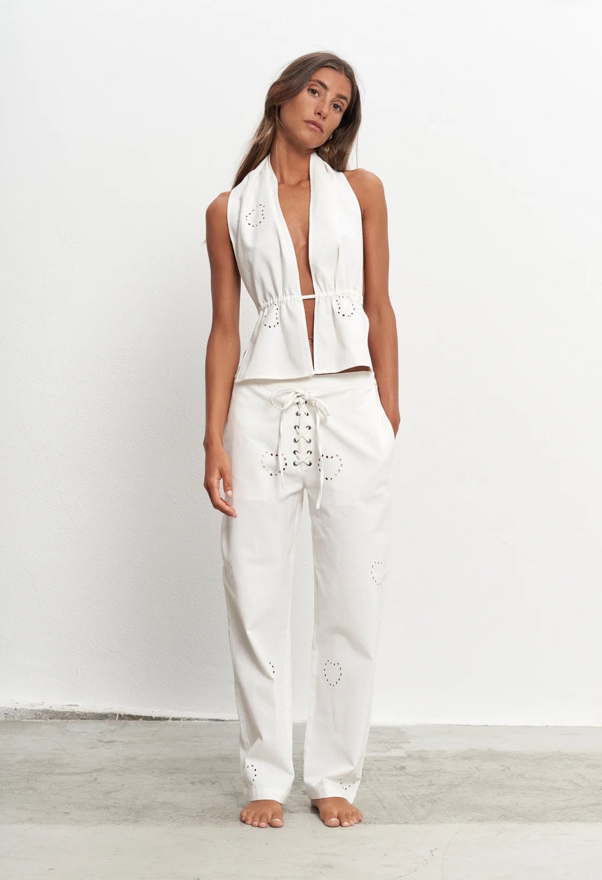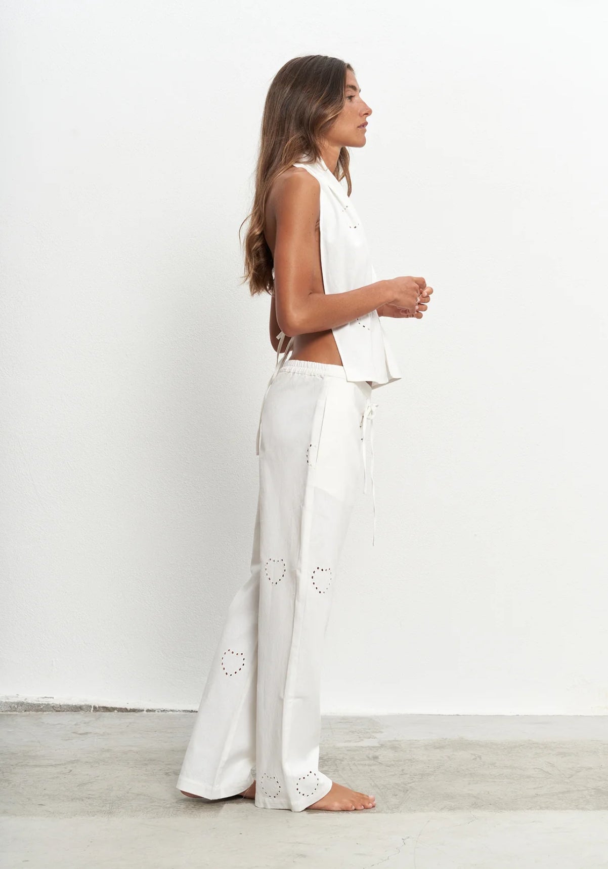 Top espalda descubierta y tira ajustable con calados bordados en forma de corazón en color blanco