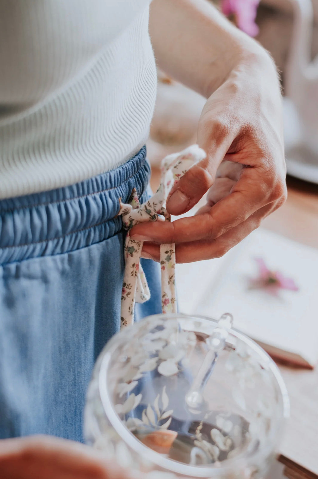 Se puede usar a cadera; ajustando el lazo de flores o más en tiro bajo/ a cadera, según preferencia.