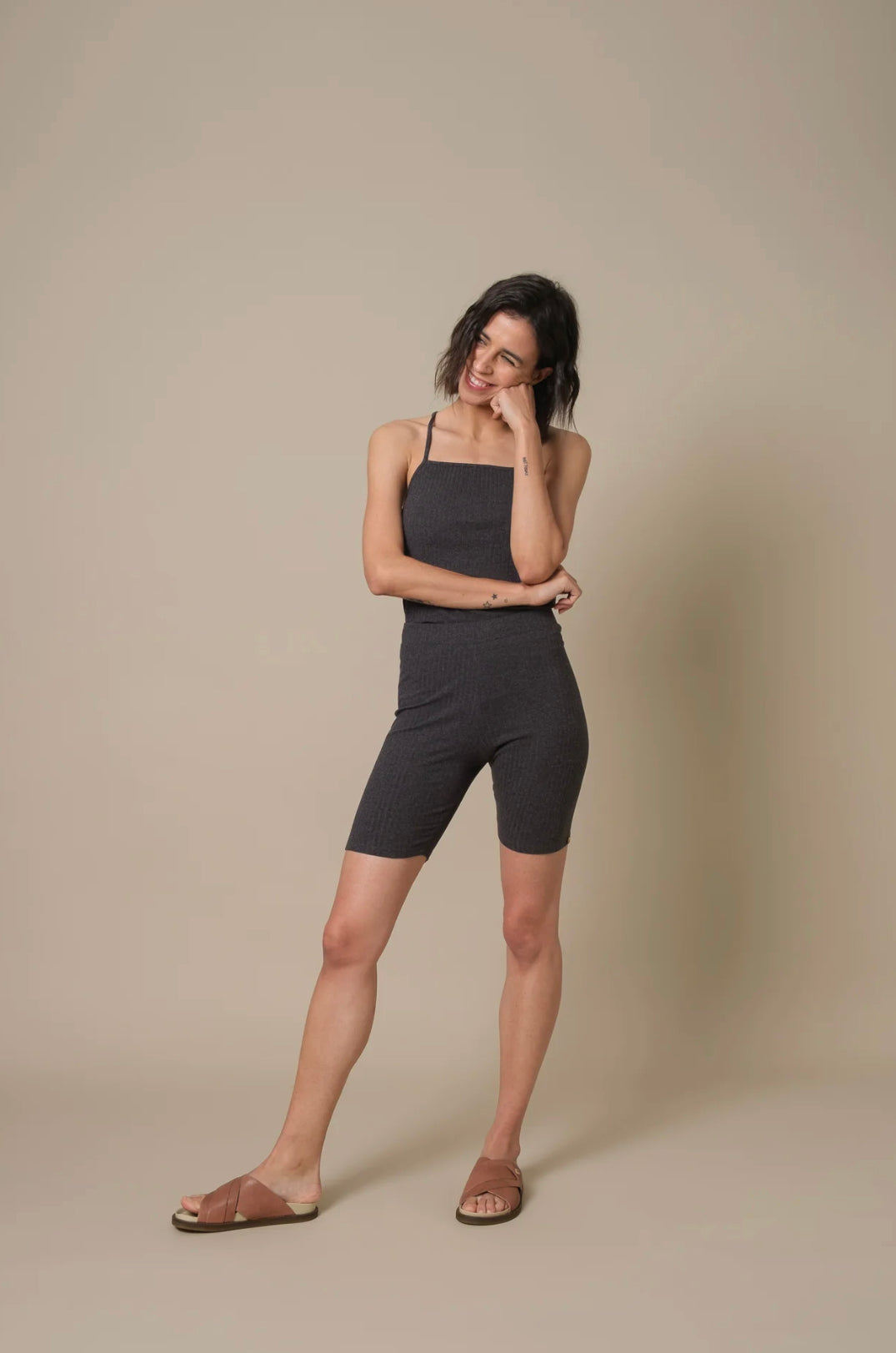 Una pieza muy versátil, su tejido suave y color la trasforman en una clave para tu look. Combinable con camisas oversized o un total look con nuestra bike short Litta.