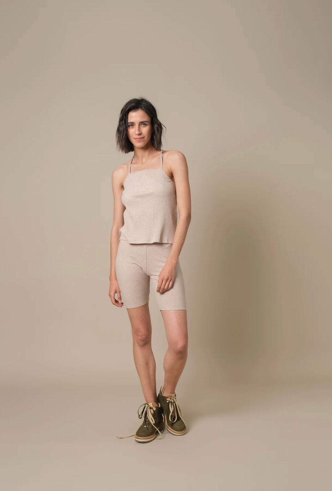 Una pieza muy versátil, su tejido suave y color la trasforman en una clave para tu look. Combinable con camisas oversized o un total look con nuestra bike short Litta.