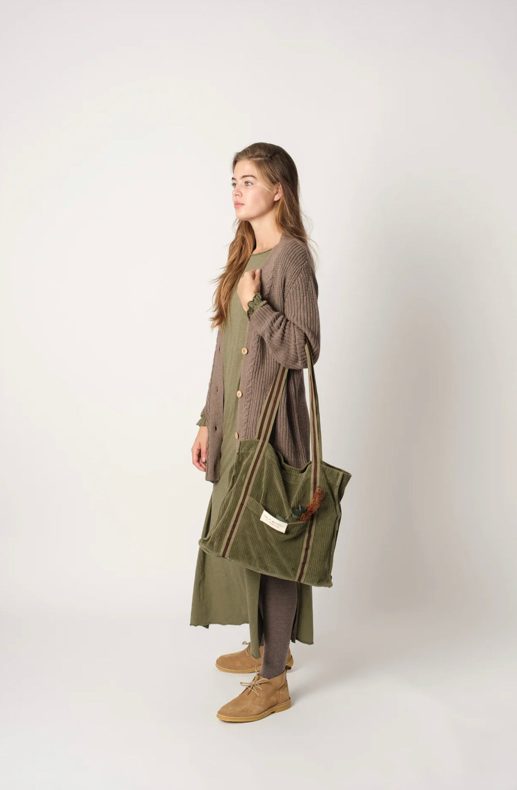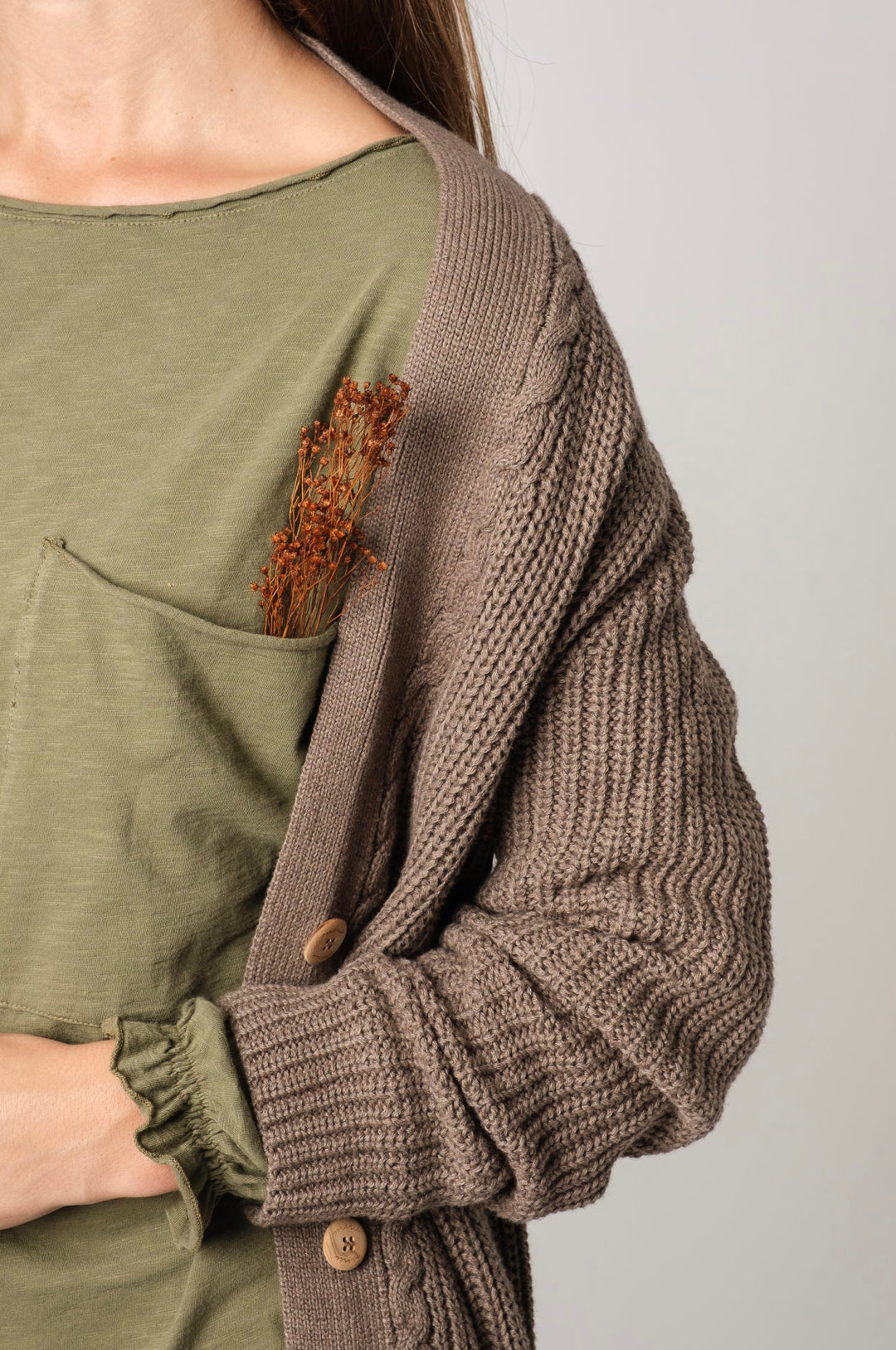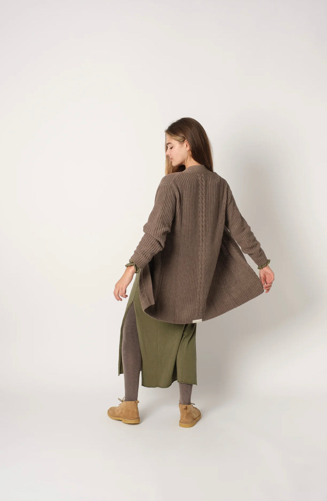 Cotton and cashmere jacket very soft to the touch. The wooden buttons, their color and composition create a direct link with nature. It was designed to be worn open or closed depending on the pieces that are combined.