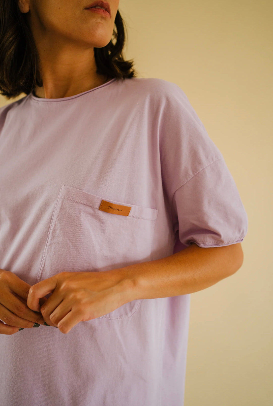Un vestido con un diseño sencillo puedes combinar de varias maneras y adaptarlo a cualquier situación. Usarlo solo como vestido, o con algún pantalón como t-shirt oversized. Tiene una silueta recta tipo camiseta y un tejido de algodón que te permitirá sentir tan fresca, tan cómoda y tan tú.