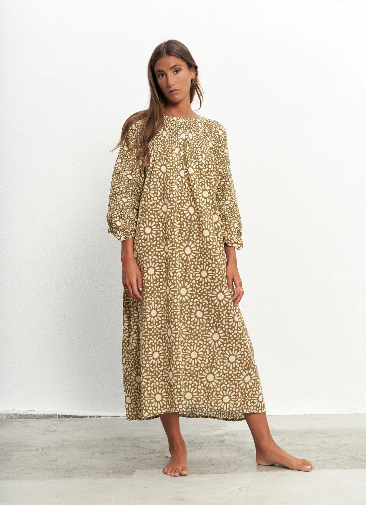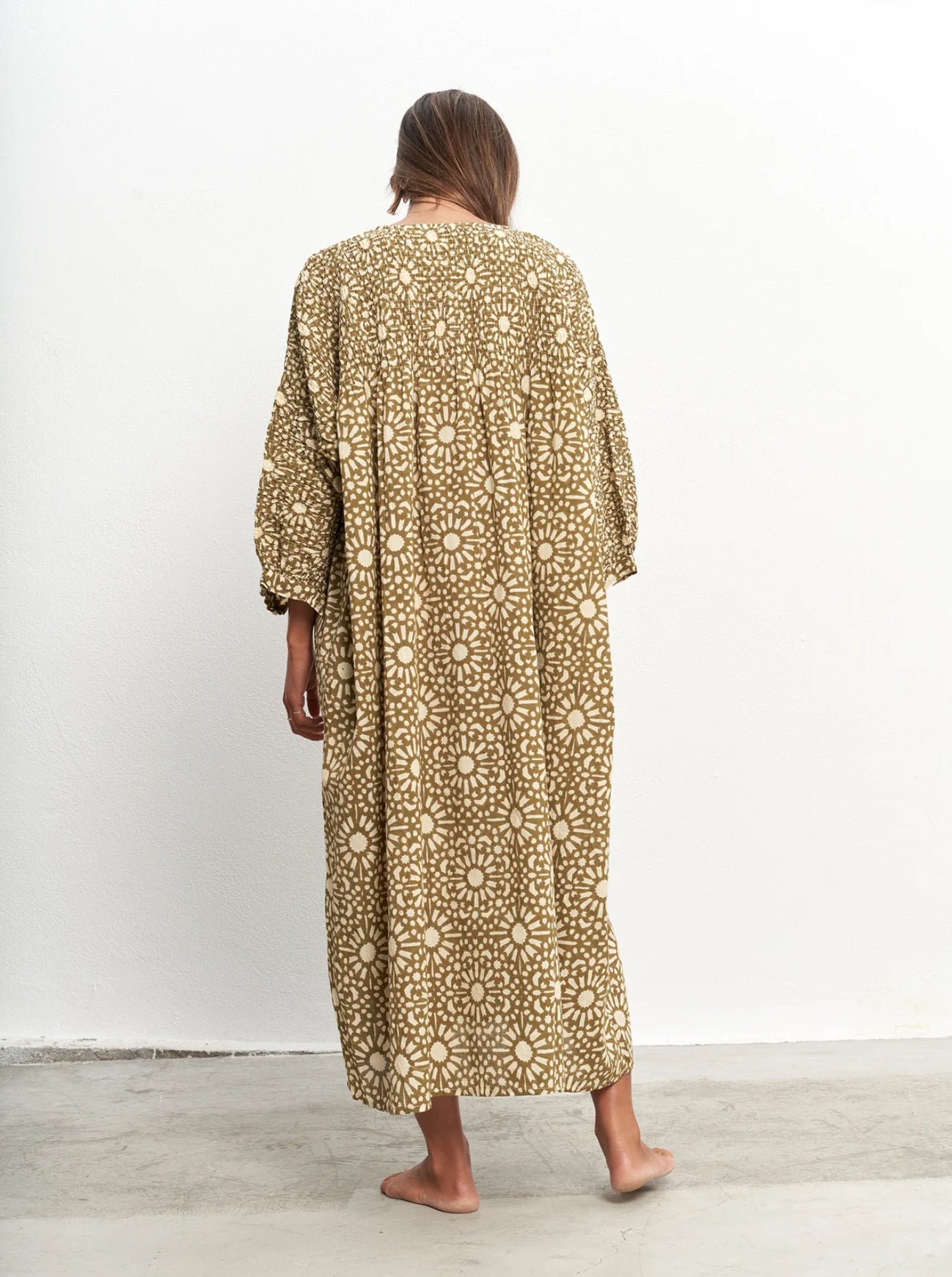 Vestido super OVERSIZE abotonado con nido de abeja en pechera y mangas