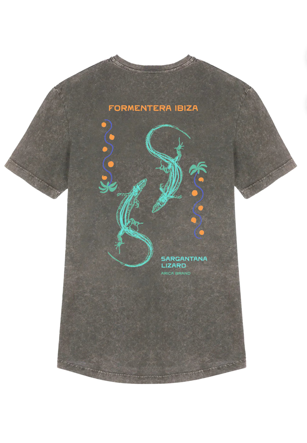 La isla de moda y un paraíso natural. Hemos querido salir del turismo y centrarnos en la fauna y flora de las Islas Pitiusas mostrando una de las especies protegidas más importantes de la zona, la lagartija Sargantana ibicenca. Sus colores van del azul al amarillo y sin duda harán de este diseño uno de los grandes Hits de este verano!