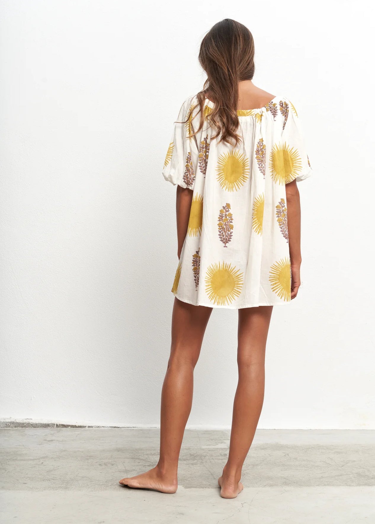 Estampado block print de soles y flores con tintes naturales en tonos amarillos y ocres 🌞