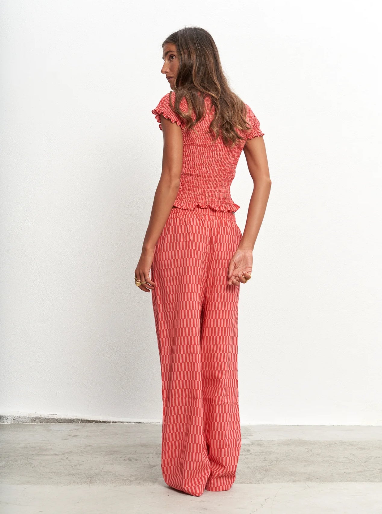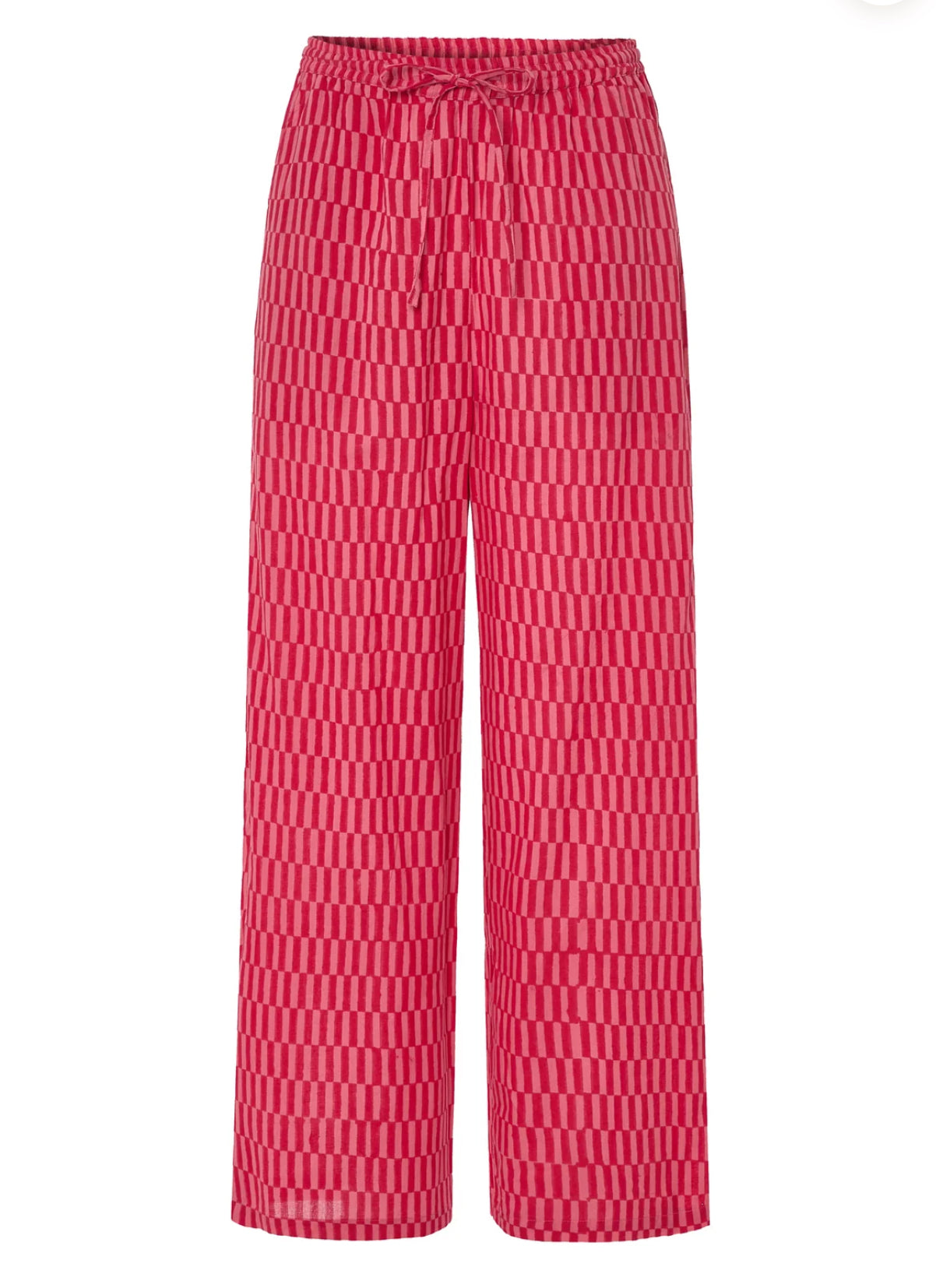 Estampado Block Print damero en rosa y rojo con tintes naturales.