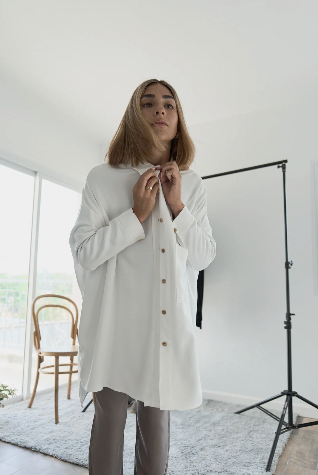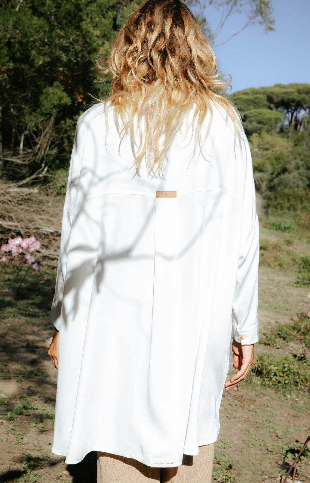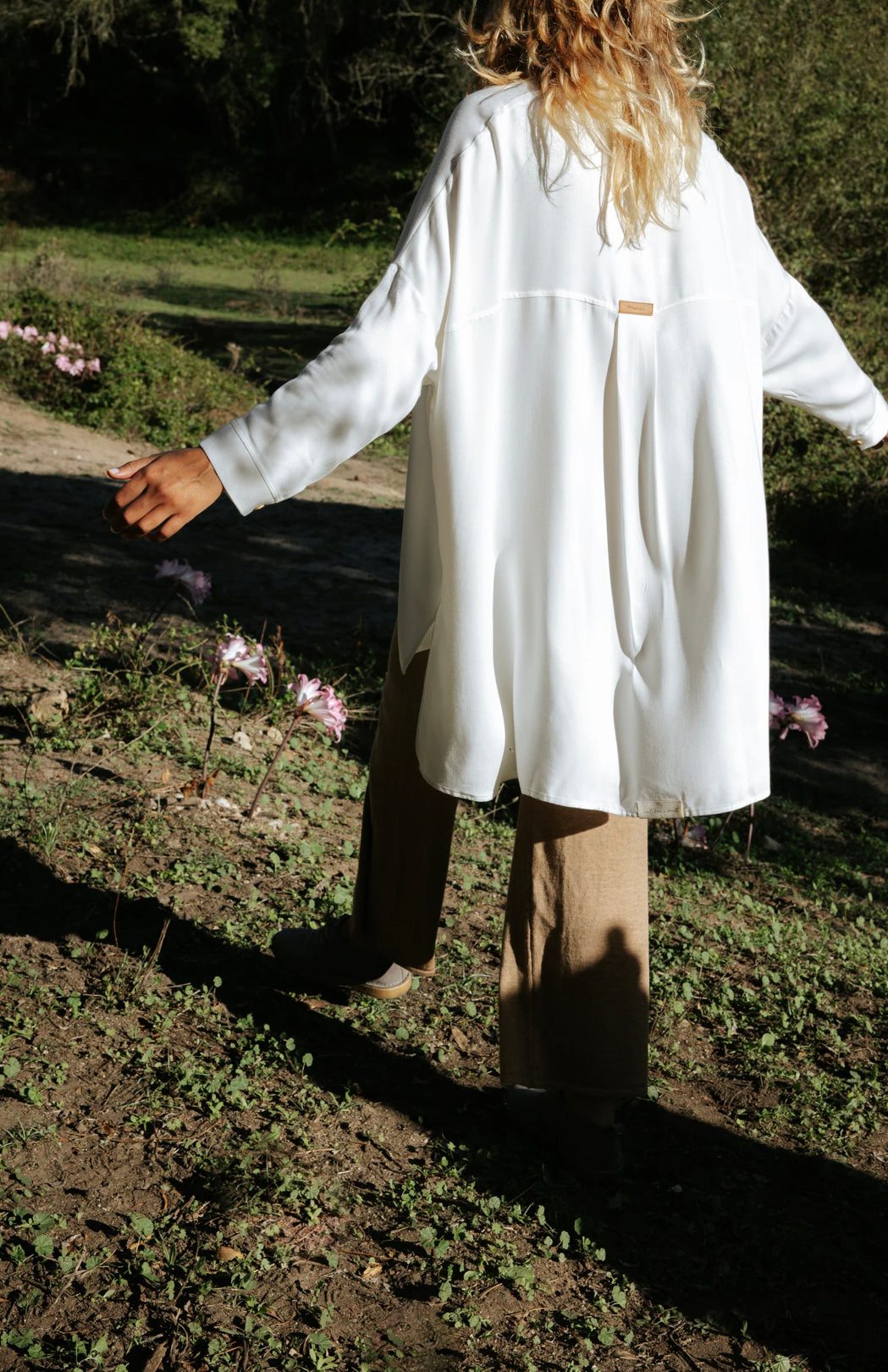 La calidad y suavidad del tencel como valor principal, traemos nuestras Rafaela para liberar tus movimientos, una pieza versátil para usar sola o en conjunto de múltiples opciones. Sus botones de madera generan una conexión directa con la naturaleza así como sus colores, su diseño con silueta amplia y acabado con cola, aportan protagonismo a cualquier look.