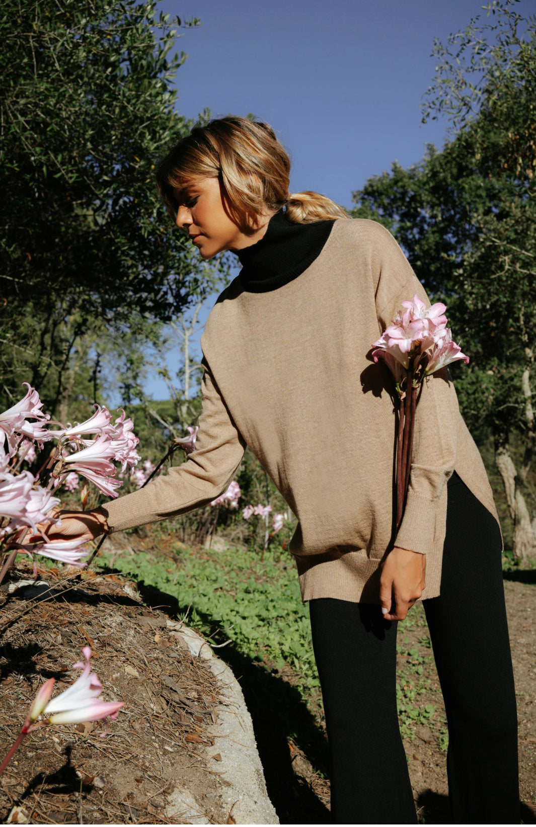 Una prenda clásica de fondo de armario, compuesta por un exquisito tejido suave y ligero que la convierte en una pieza que no querrás quitarte. El cuello negro, la manga caída y sus acabados hacen que este sweater eleve cualquier look.
