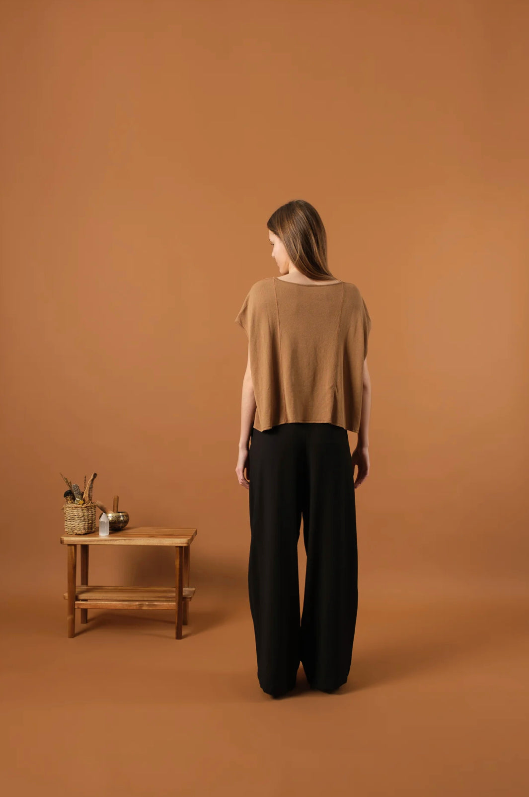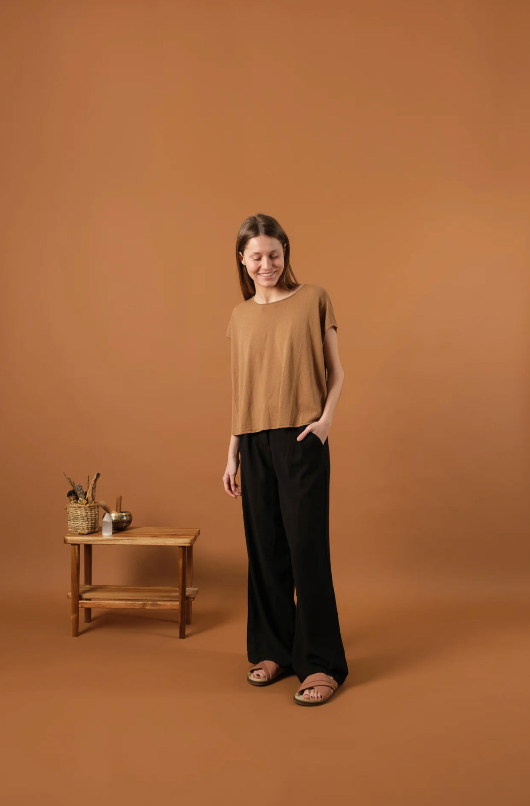 Un top versátil diseñada para cualquier estilo. Su tejido aporta comodidad, frescura y feminidad. Tiene un escote redondo y mangas con caída que le dan un toque romántico y especial.